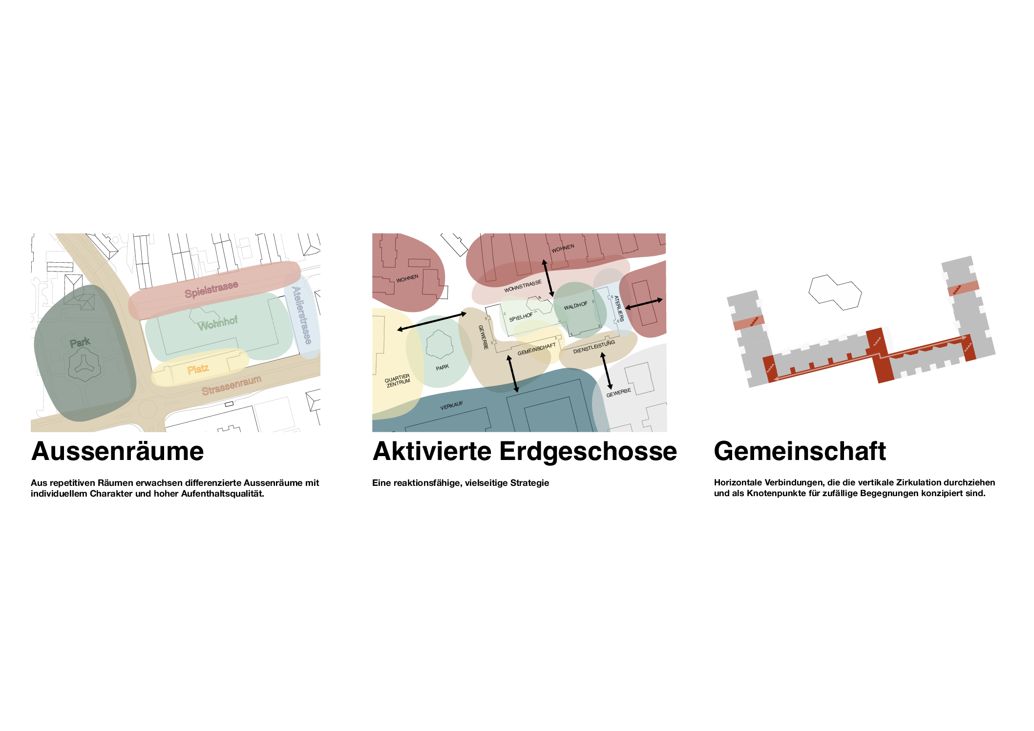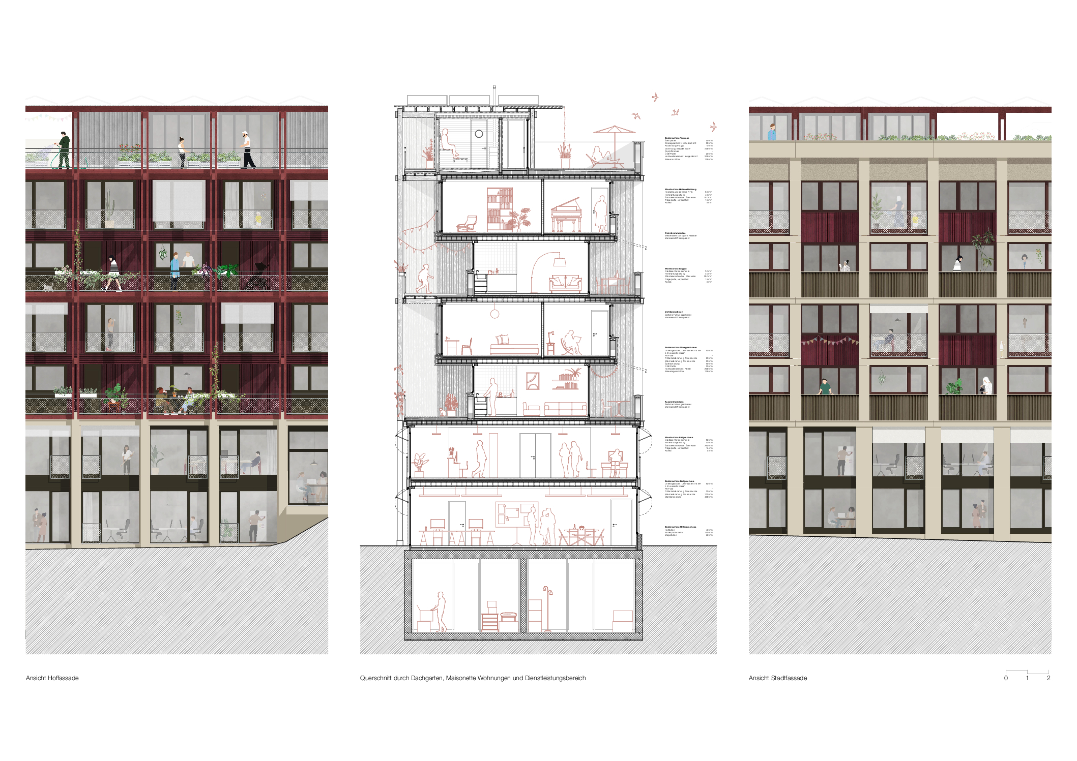 The ground floor is activated with shared residential amenities, ateliers, and flexible gastronomic and commercial spaces, creating a broad gradient of atmospheres, ranging from lively public plazas, semi public resident-focused zones to quieter office fronts.